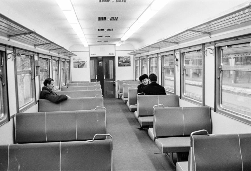 Rīgas vagonu rūpnīcas (RVR) dīzeļvilciena DR-015 vagona iekšskats.