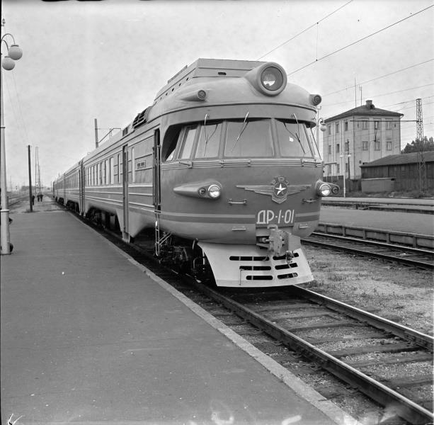 Rīgas vagonu rūpnīcas (RVR) izgatavotais dīzeļvilciens DR-1-01 izmēģinājuma brauciena laikā.