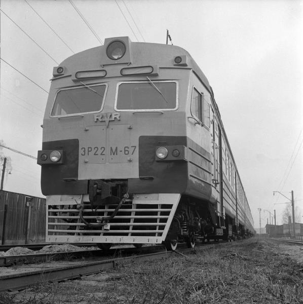 Rīgas vagonu rūpnīcas (RVR) elektrovilciens ER22M-67 pirms izmēģinājuma brauciena.