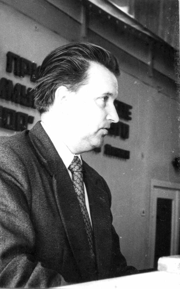 Rīgas ķīmiskās mašīnbūves rūpnīcas "Rigahimmaš" direktors Dainis Bebris uzstājas darbinieku sapulcē.