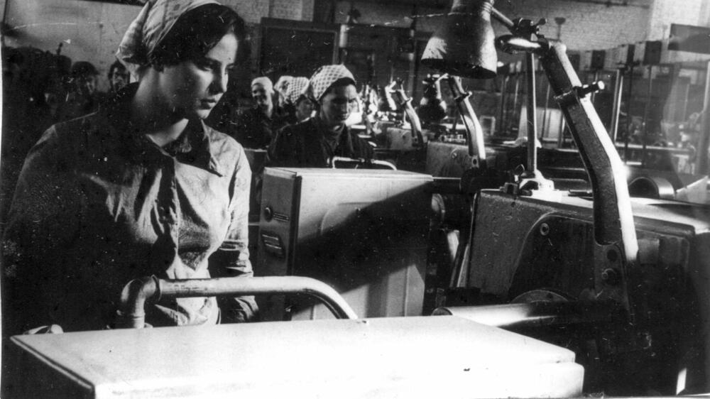 Rīgas ķīmiskās mašīnbūves rūpnīca "Rigahimmaš". Darba process uzņēmuma cehā Nr. 4.