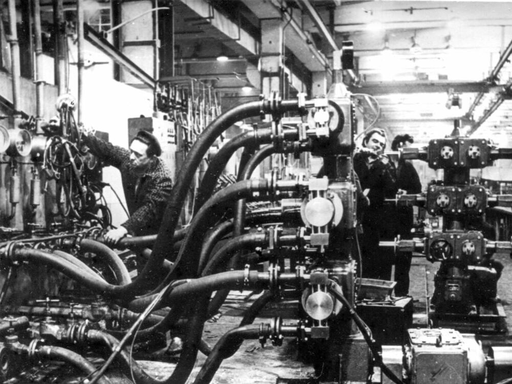 Rīgas ķīmiskās mašīnbūves rūpnīca "Rigahimmaš". Darba process mehāniskā un montāžas ceha izmēģinājumu iecirknī.