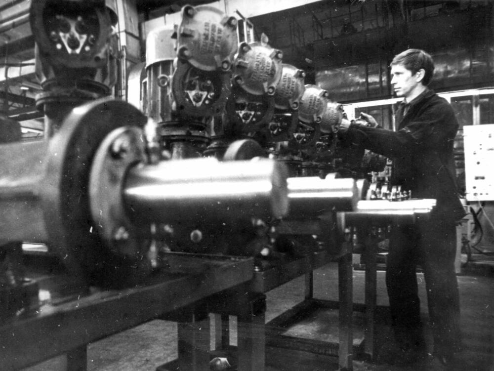 Ar Darba Sarkanā Karoga ordeni apbalvotā Rīgas ķīmiskās mašīnbūves rūpnīca "Rigahimmaš". Mehāniskā un montāžas ceha eksporta iecirkņa atslēdznieku brigādes vadītājs Vladimirs Firčenko darba laikā.