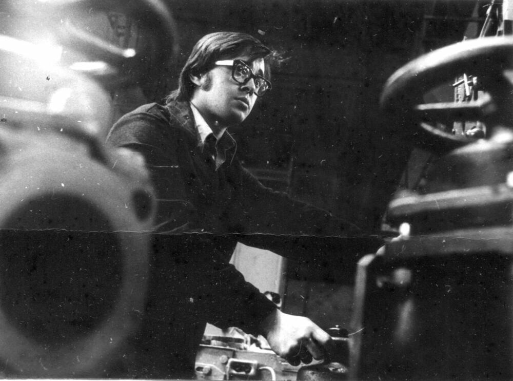 Ar Darba Sarkanā Karoga ordeni apbalvotā Rīgas ķīmiskās mašīnbūves rūpnīca "Rigahimmaš". Mehāniskā un montāžas ceha komjauniešu brigādes vadītājs, ražošanas pirmrindnieks Genādijs Petrovs darba laikā.