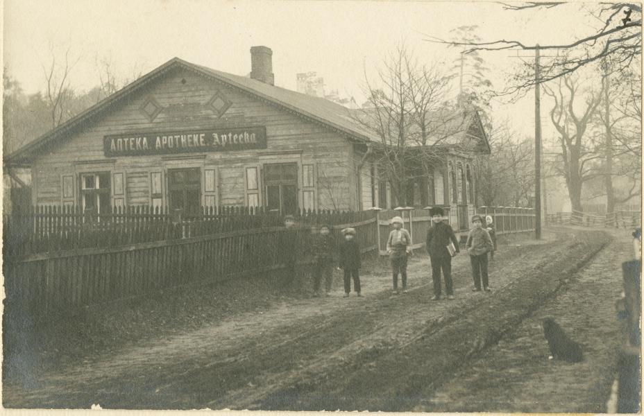 Mīlgrāvja aptieka un koka apbūve, pie kuras uz ielas rotaļājas bērni. Apbūves vietā, pēc tās nojaukšanas, tika ierīkota "Cīzes kuģu būvētava" ("Ziese Mühlgraben-Werft", saukta arī "F. Šichau Mīlgrāvja kuģu būvētava"). Kuģu būvētavu 1913. gadā izveidoja Karls Henrihs Cīze (Carl Heinrich Ziese) kā Vācijas kuģu būvētavas "Schichau-Werke" meitas uzņēmumu ar mērķi piekļūt Krievijas Impērijas ieroču tirgum būvējot galvenokārt karakuģus. 1915. gadā kuģu būvētava tika atsavināta un nonāca tiešā Krievijas Impērijas pārraudzībā. Pēc Latvijas Republikas neatkarības proklamēšanas 1925. gada 11. maijā uz statūtu pamata, pārņemot Cīzes kuģu būvētavas uzņēmumu ar visu tam piederošo nekustamu un kustamu mantu, tika izveidota akciju sabiedrība "Mīlgrāvja kuģu būvētavas un mašīnu fabrika".