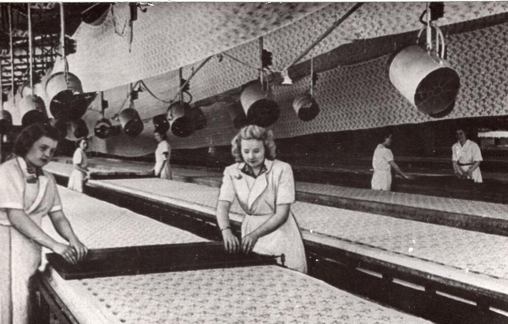Kombināta “Rīgas audums” apdrukas ceha skats (cehs ieguvis kombināta "Sarkano karogu".)