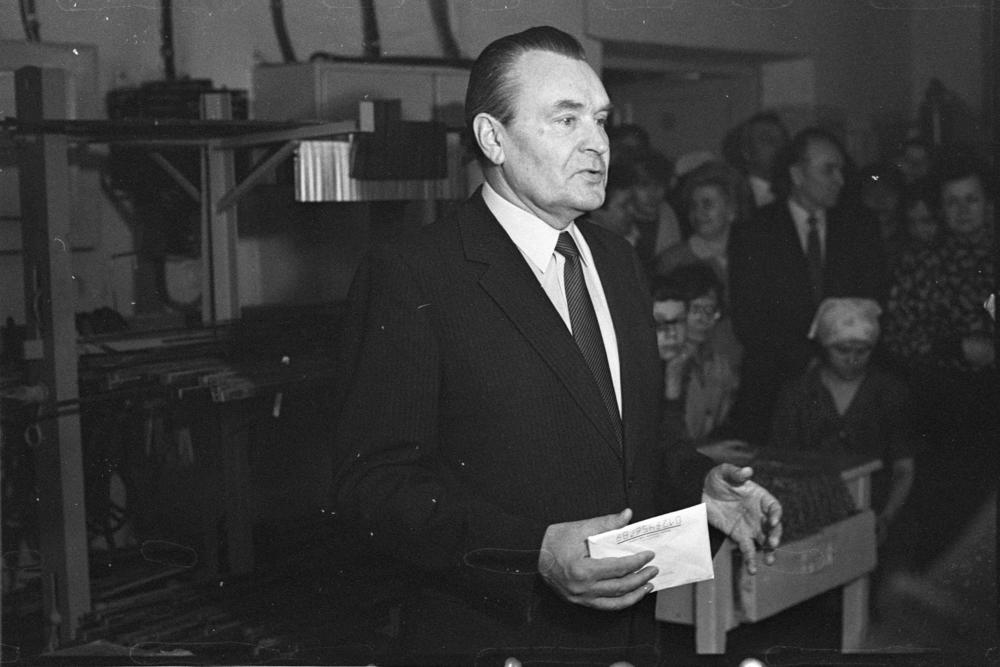 PSRS tautas deputātu kandidāts Jānis Vagris fabrikā Rīgas manufaktūra