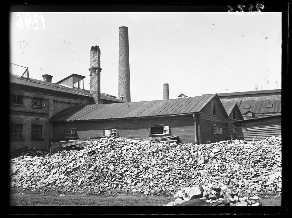 Stikla fabrikas "Emolips" teritorijas daļa ar vienu no fabrikas ēkām Sliežu ielā 6.