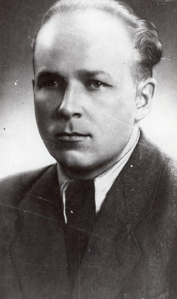Valsts elektrotehniskās fabrikas (VEF) jaunās tehnoloģijas ceha atslēdznieks, ražošanas novators Mihails Aleksejevs. Portrets.