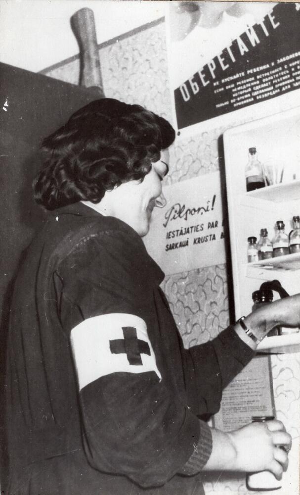 Valsts elektrotehniskā fabrika (VEF). 10. ceha medpunkta vadītāja Skujiņa darba laikā.