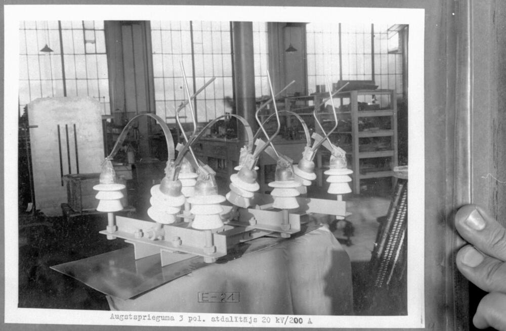 Valsts elektrotehniskajā fabrikā (VEF) ražotais augstsprieguma 3-polu atdalītājs, 20kV / 200A.