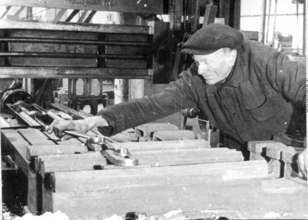 Rīgas eksperimentālās rūpnīcas "Stars" ražošanas pirmrindnieks J. Locis darba laikā.