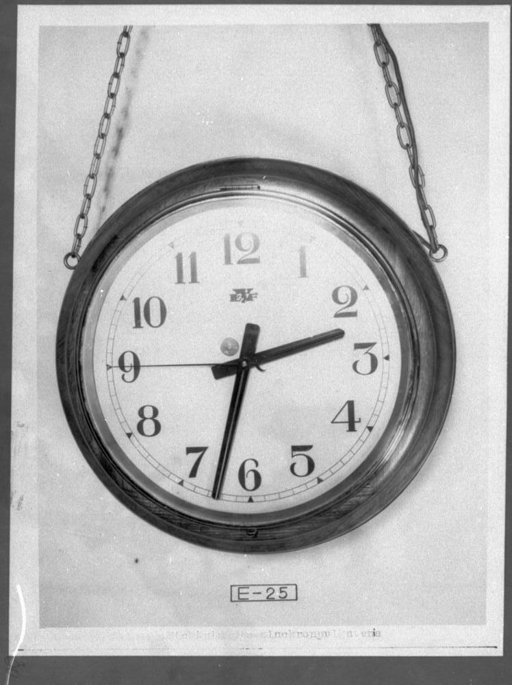 Valsts elektrotehniskajā fabrikā (VEF) ražotais elektriskais sienas pulkstenis.