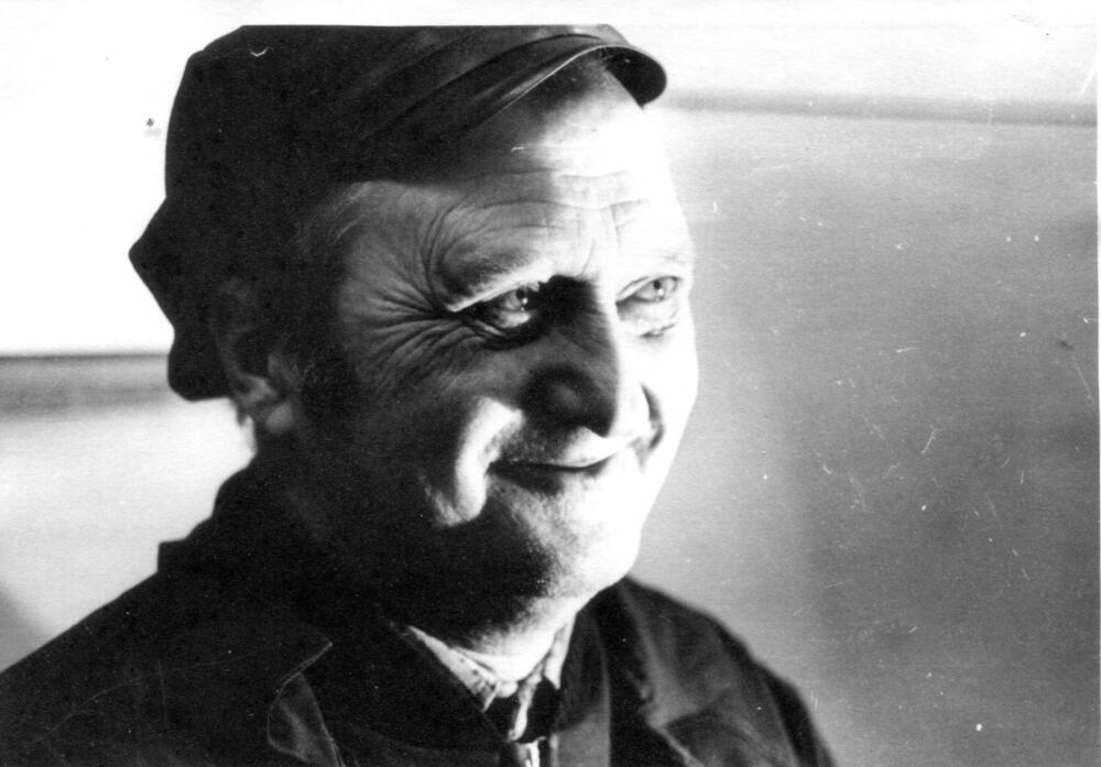 Rīgas eksperimentālās rūpnīcas "Stars" atslēdznieks, darba veterāns H. Puze. Portrets.