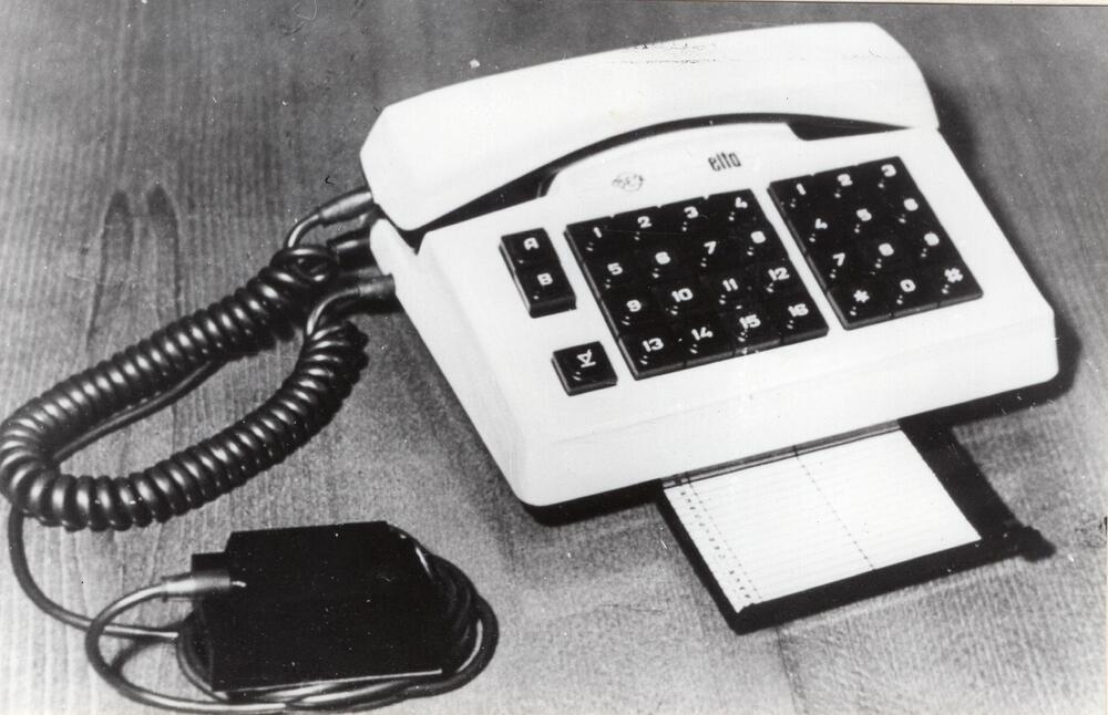 Valsts elektrotehniskās fabrikas (VEF) produkcijas paraugs - telefona aparāts Elta".