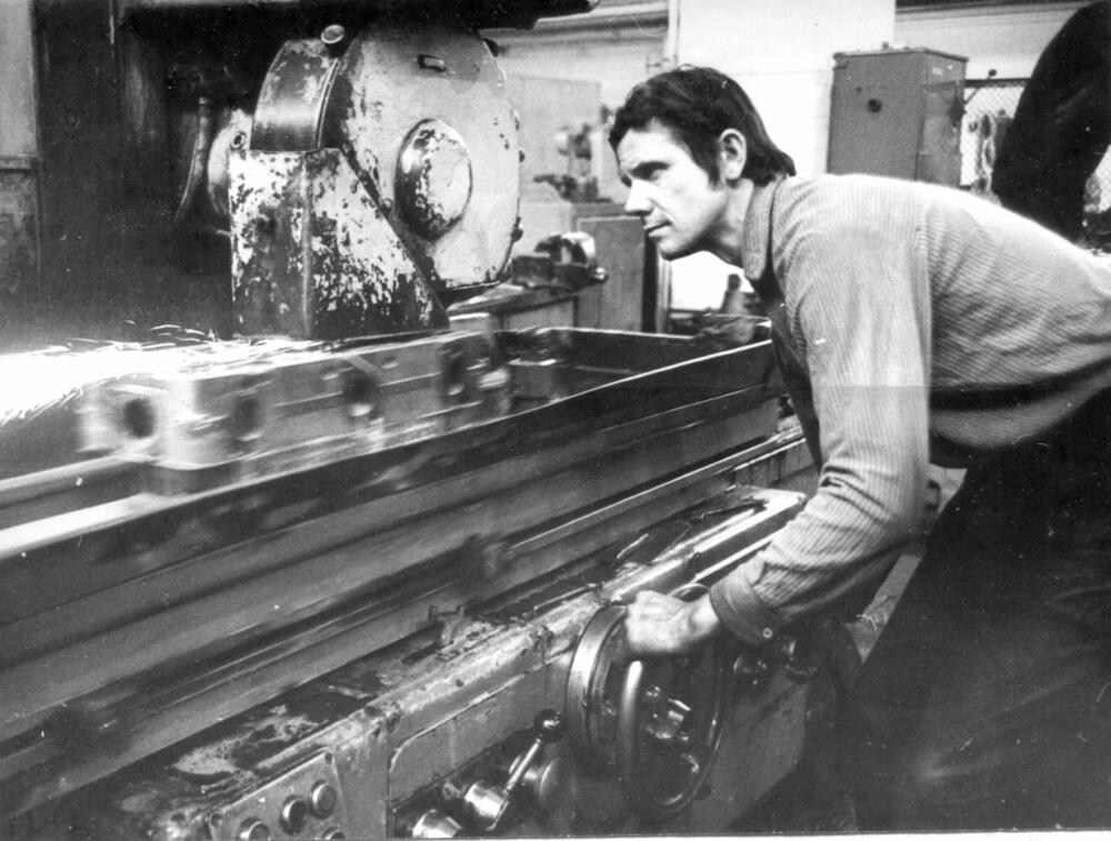 Rīgas eksperimentālās rūpnīcas "Stars" slīpētājs, Goda Zīmes ordeņa kavalieris Aldis Griķis darba laikā.