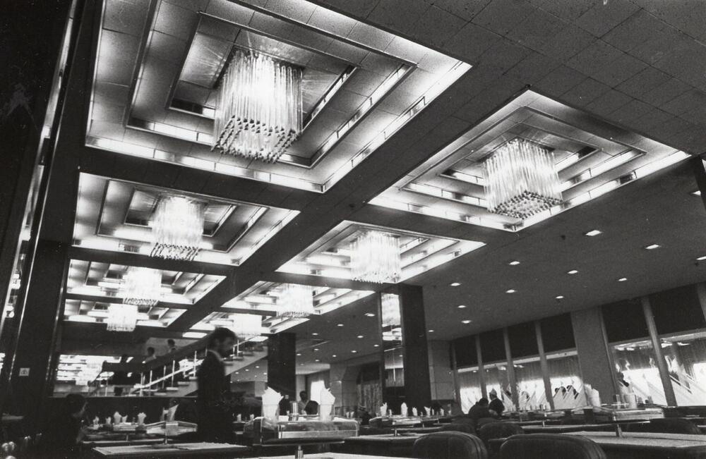 Valsts elektrotehniskā fabrika (VEF). Sabiedriskās ēdināšanas kombināta "Vefietis" kafejnīcas zāle.