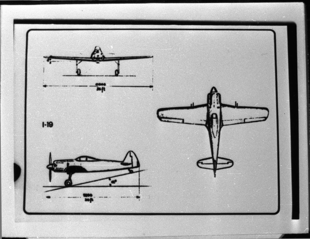 Latviešu aviokonstruktora Kārļa Irbīša veidotais projekts lidmašīnai - iznīcinātājam "VEF Irbītis I - 19" (netika ražots, rasējumi un maketi ir pazuduši). Zīmējuma fotokopija.