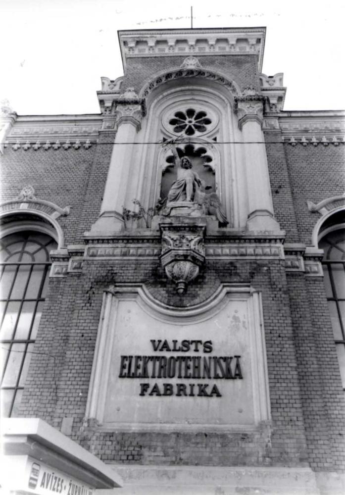 Valsts elektrotehniskās fabrikas (VEF) galvenās ēkas fasāde.