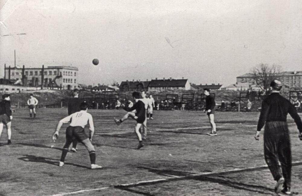 Futbola spēle Valsts elektrotehniskās fabrikas (VEF) stadionā.