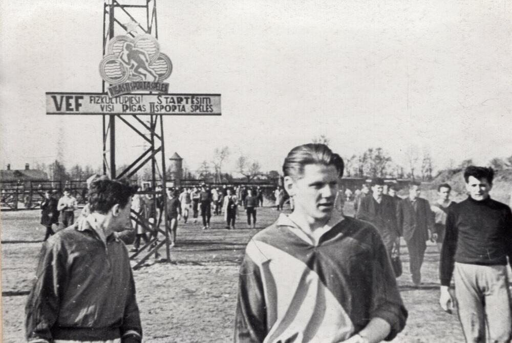 Valsts elektrotehniskās fabrikas (VEF) kolektīva sporta spēles. Dalībnieki uzņēmuma stadionā.