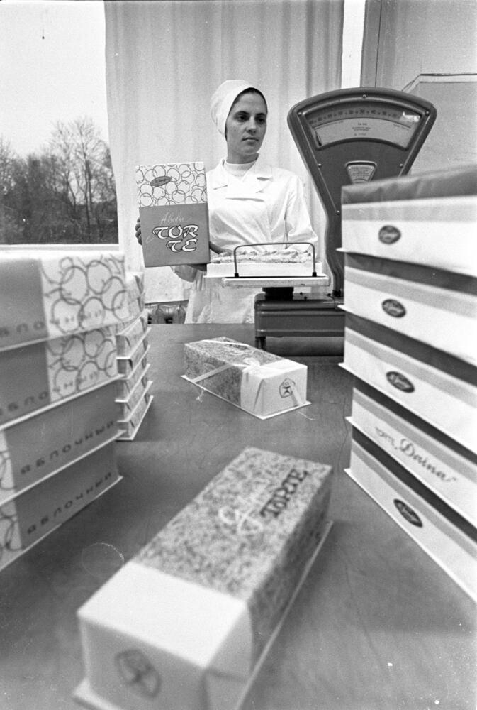 Svētku toršu svēršana konditorejas fabrikā "17. jūnijs" (tagad Staburadze)