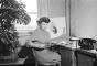Rūpnīcas “VEF” māksliniece Zelma Baboliņa pie darba galda. Portrets.