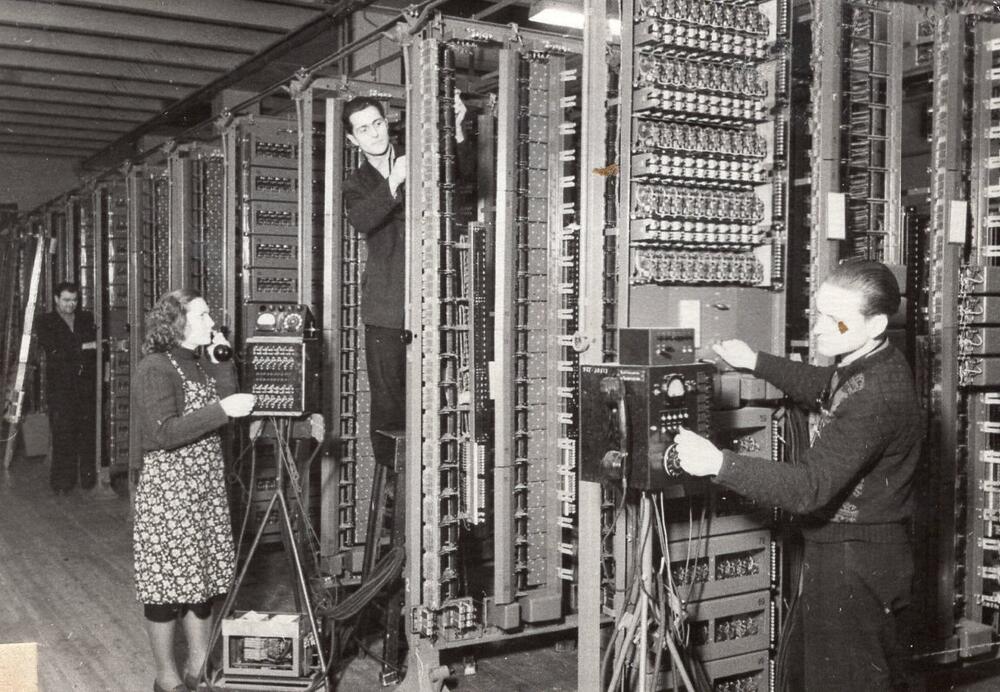 Valsts elektrotehniskās fabrikas (VEF) telefonijas cehs. Automātisko telefona centrāļu montāža.