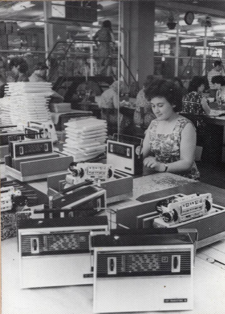 Valsts elektrotehniskās fabrikas (VEF) radio cehs. Darba process tranzistoru radiouztvērēju "VEF Tranzistors 10" montāžas iecirknī.