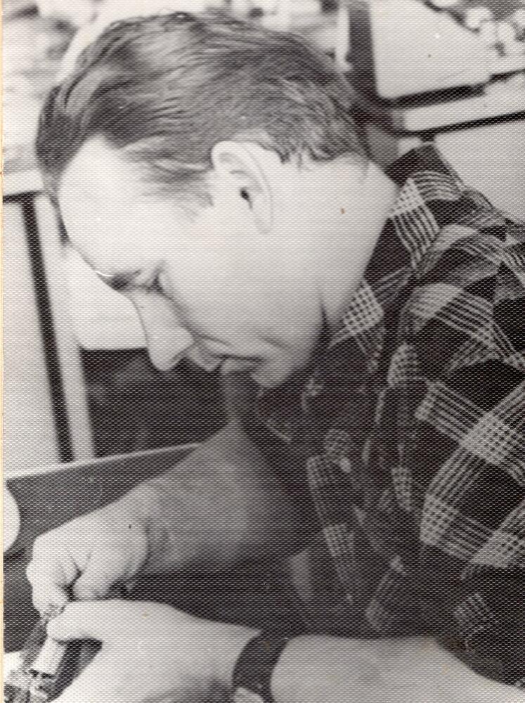 Valsts elektrotehniskās fabrikas (VEF) montieris, Ļeņina ordeņa kavalieris Eduards Tralmaks darba laikā.