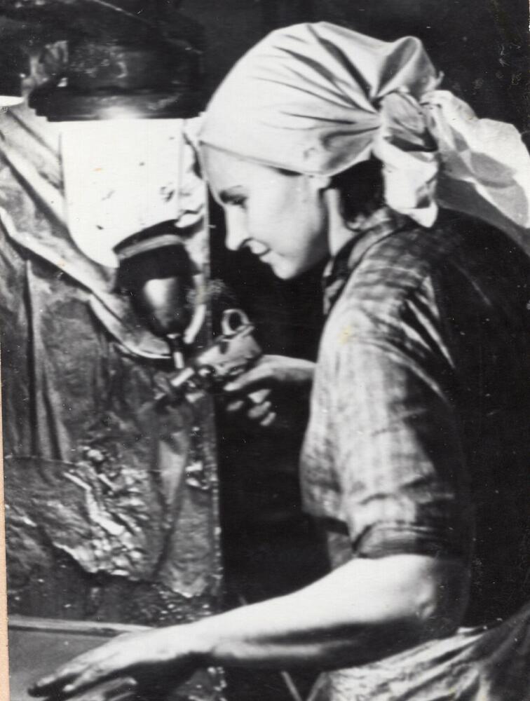 Valsts elektrotehniskā fabrika (VEF). Krāsu un galvanisko pārklājumu ceha lakotāja Zenta Zarkeviča darba laikā.
