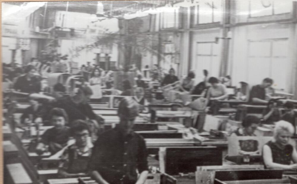 Valsts elektrotehniskās fabrikas (VEF) krāsu un galvanisko pārklājumu cehs. Ražošanas process montāžas iecirknī.