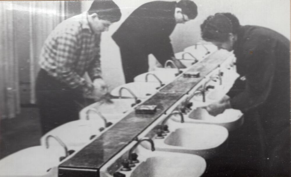 Valsts elektrotehniskā fabrika (VEF). Elektrotehniskā ceha sanitārā telpa.