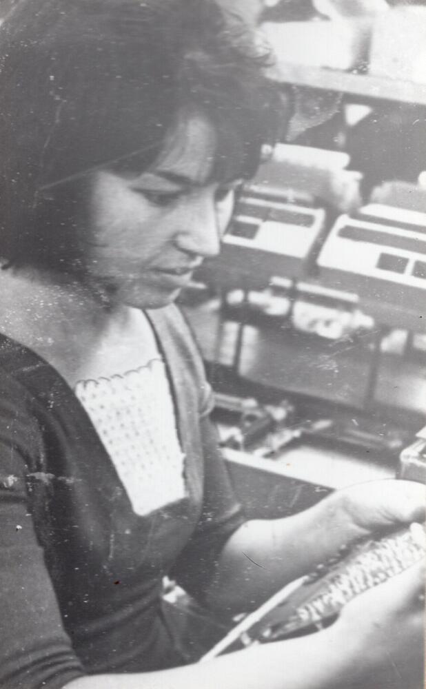Valsts elektrotehniskā fabrika (VEF). Radio ceha regulētāja, ceha komjaunatnes komitejas sekretāre Svetlana Semjonova darba laikā.