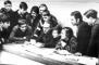 Valsts elektrotehniskā fabrika (VEF). Militāri patriotiskās audzināšanas padomes priekšsēdētājs A. Saulītis ar telefonijas ceha karaklausībai pakļautajiem jauniešiem sarunas laikā.