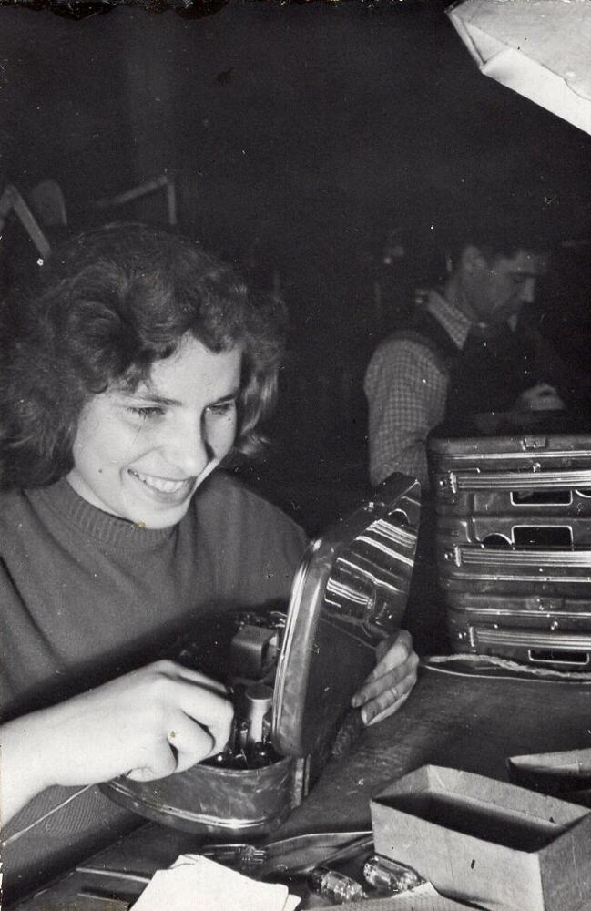 Valsts elektrotehniskās fabrikas (VEF) radio cehs. Radioaparātu iestatītāja, ražošanas pirmrindniece Klāra Bogudlova darba laikā.