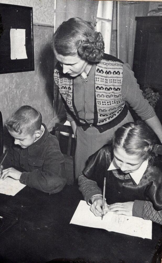 Valsts elektrotehniskās fabrikas (VEF) bērnu istabas audzēkņi ar audzinātāju Silviju Zasu.
