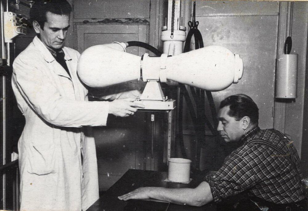 Valsts elektrotehniskās fabrikas (VEF) poliklīnikas rentgena kabinetā.