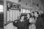 Rūpnīcas “VEF” telefonijas ceha strādnieki pie sienas avīzes „Komutators”.