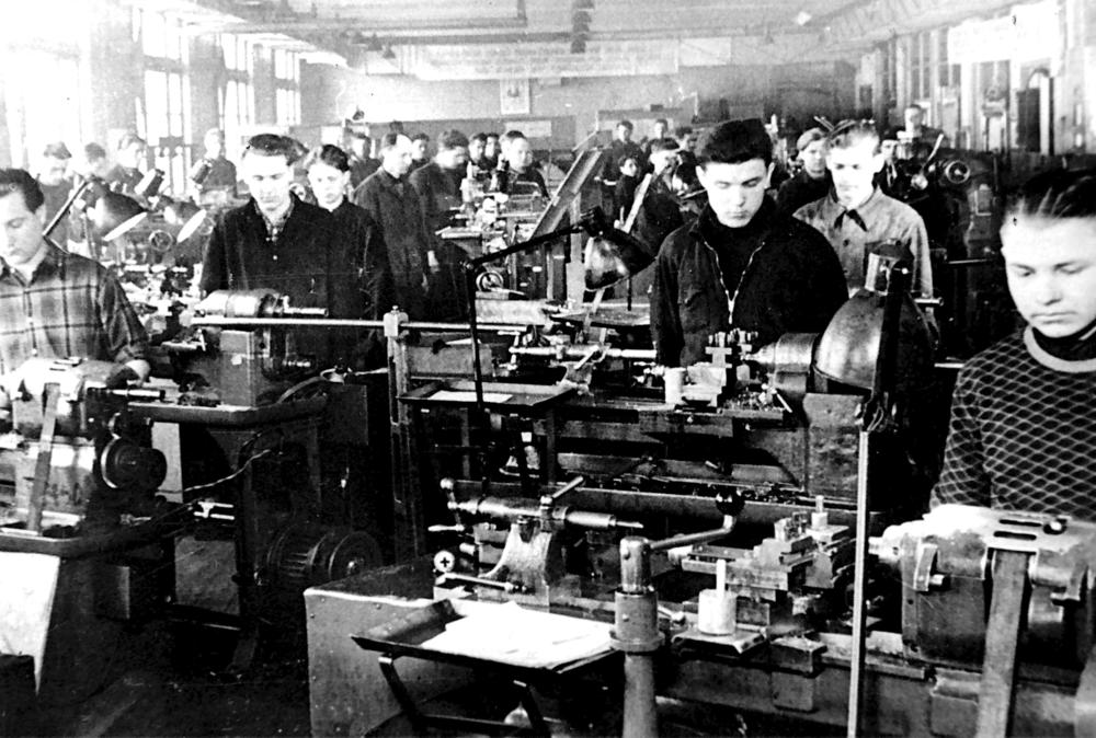 Klusuma brīdis rūpnīcas "VEF" instrumentālajā cehā Padomju Savienības Komunistiskās partijas ģenerālsekretāra, PSRS Ministru Padomes Prezidija priekšsēdētāja Josifa Staļina (īstajā vārdā Josifs Džugašvili) bēru laikā.