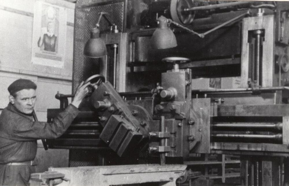 Valsts elektrotehniskā fabrika (VEF). Ēvelēšanas iekārta instrumentālajā cehā.