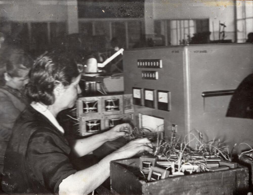 Valsts elektrotehniskā fabrika (VEF). Tehniskās kontroles nodaļas kontroliere L. Ābelīte veic transformatoru kvalitātes kontroli.