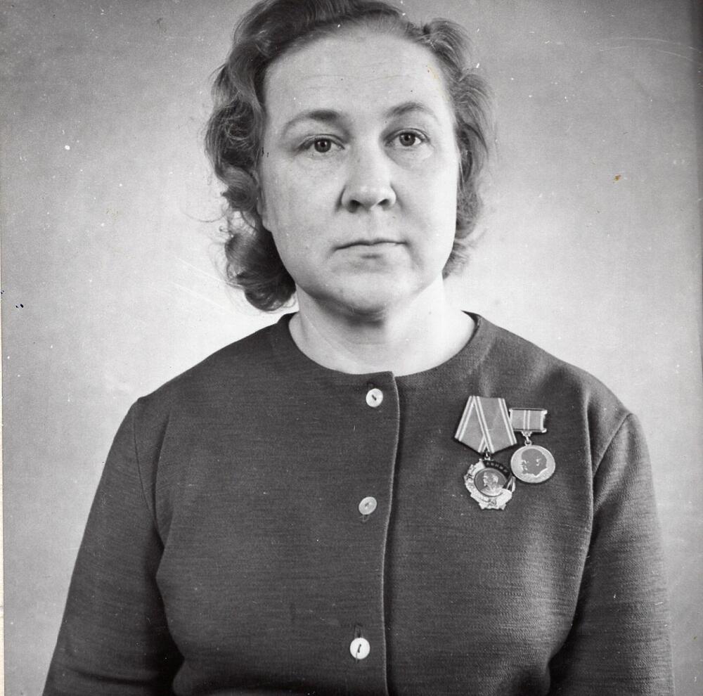 Valsts elektrotehniskās fabrikas (VEF) telefonijas ceha darbiniece, PSRS Augstākās Padomes deputāte Ausma Ennīte. Portrets.