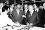 PSKP CK ģenerālsekretārs Mihails Gorbačovs viesojas V.I.Ļeņina vārdā nosauktā Rīgas ražošanas apvienībā ,,VEF". 1. rindā no labās: 1. ģenerālsekretārs Mihails Gorbačovs, 2. ražošanas apvienības ģenerāldirektors Oļegs Ļeņovs.