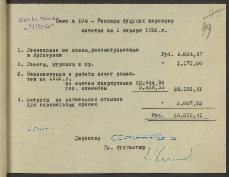 Fonds: Valsts Rīgas laku un krāsu rūpnīca. Lieta: Fabrikas pamatbudžets 1949.gadam.