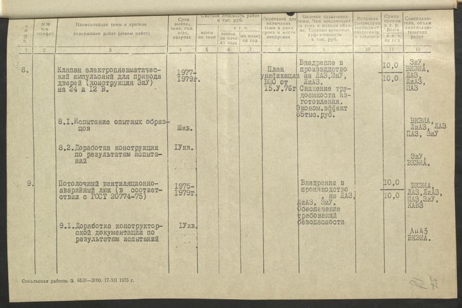 Fonds: Akciju sabiedrība "RAF" un Akciju sabiedrība ""RAF" - Inženieru tehniskais centrs". Lieta: Rūpnīcas zinātniski tehniskā un konstruktoru izmēģinājumu darba plāni 1975.-1978.g.