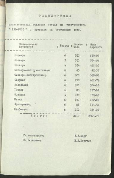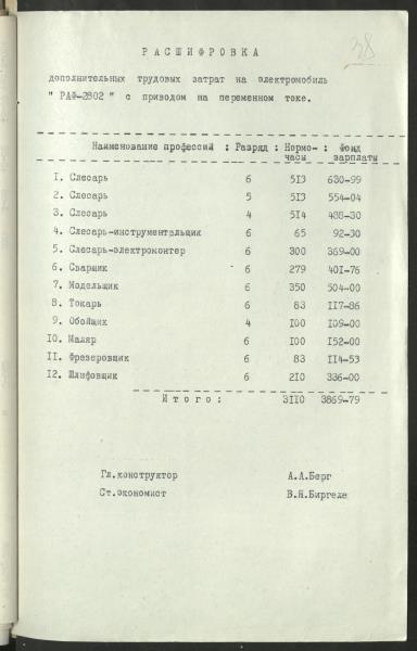 Fonds: Akciju sabiedrība "RAF" un Akciju sabiedrība ""RAF" - Inženieru tehniskais centrs". Lieta: Mikroautobusu sērijas RAF 2802, elektrobusa, ražošanas izmaksu aprēķini.