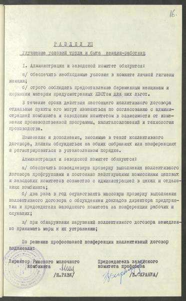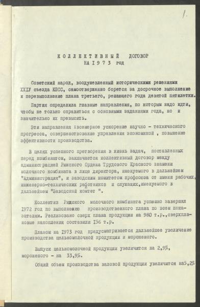 Fonds: ''Rīgas piena kombināts'', valsts uzņēmums. Lieta: Kolektīvais līgums.