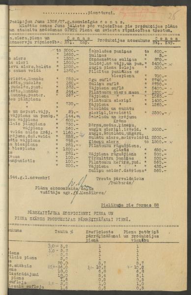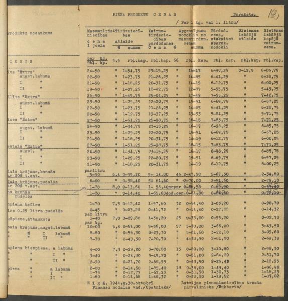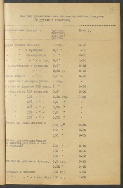 Fonds: ''Rīgas piena kombināts'', valsts uzņēmums. Lieta: Gatavās produkcijas, piena produktu, pamatlīdzekļu, taras u.tml. cenas.