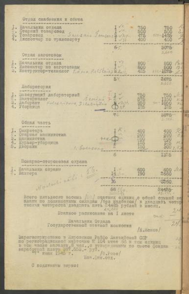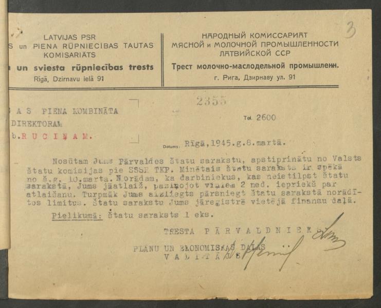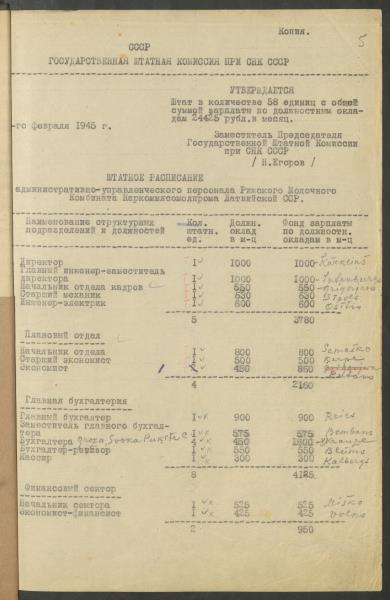 Fonds: ''Rīgas piena kombināts'', valsts uzņēmums. Lieta: Štatu saraksti.